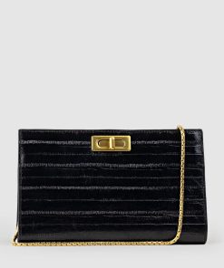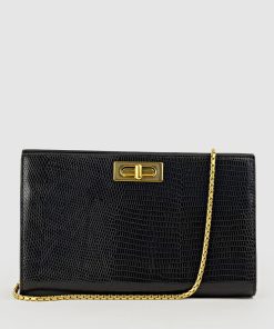 Edward Meller Women’s Nayla Bag With Twist Hardware In Black Tejus Lizard Print | Blacktejus