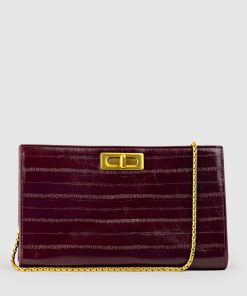 Edward Meller Women’s Nayla Bag With Twist Hardware In Black Cherry Eel Print | Blacherryeel