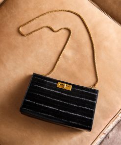 Edward Meller Women’s Nayla Bag With Twist Hardware In Black Tejus Lizard Print | Blacktejus
