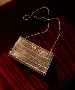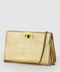 Edward Meller Women’s Nayla Bag With Twist Hardware In Gold Tejus Lizard Print | Goldtejus