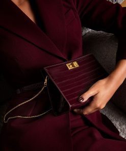 Edward Meller Women’s Nayla Bag With Twist Hardware In Black Cherry Eel Print | Blacherryeel