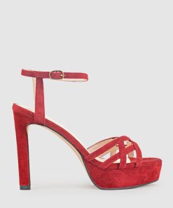 Edward Meller Women’s Sami110 Lattice Front Platform Sandal In Cherry Suede | Cherrysue