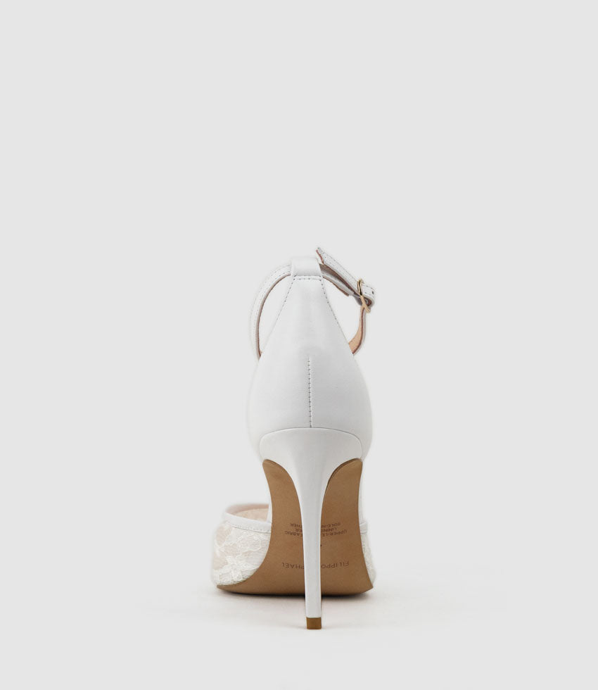 Edward Meller Women’s Alice100 Stiletto Lace Pump In White | White