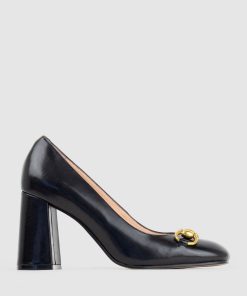 Edward Meller Women’s Bailey85 Block Heel Pump With Trim In Ash Calf | Ashcalf