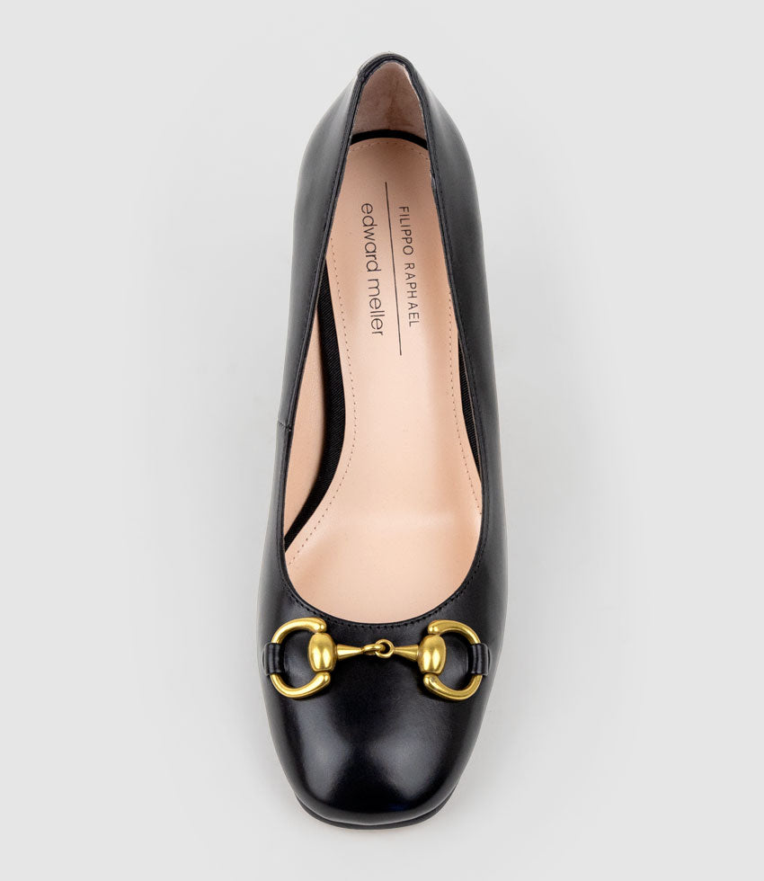 The BAILEY85 pump by Filippo Raphael for Edward Meller is a timeless addition to any wardrobe. Expertly crafted from smooth calf leather, this sophisticated style features squared-off toes adorned with elegant horse-bit hardware. Set on a sturdy 85 mm block heel, the BAILEY85 offers the perfect balance of height and comfort. Finished with cushioned insoles and full leather linings, they ensure breathability and effortless all-day wear.