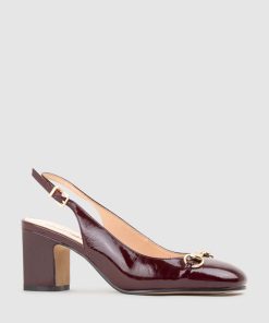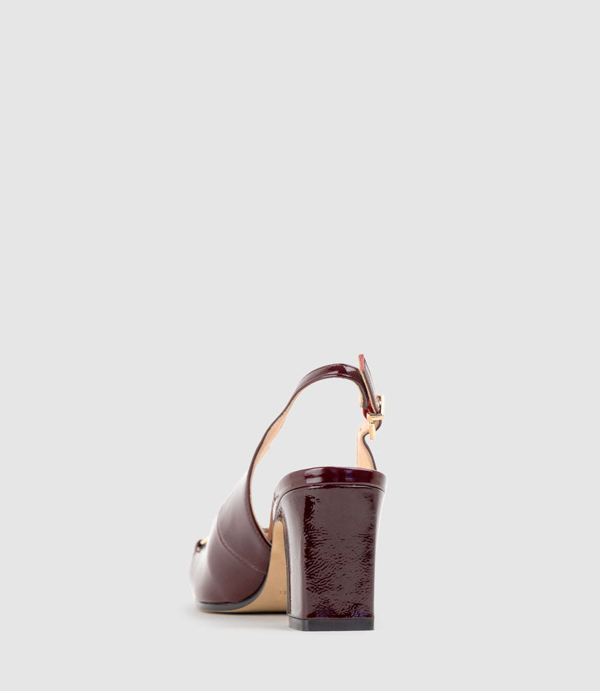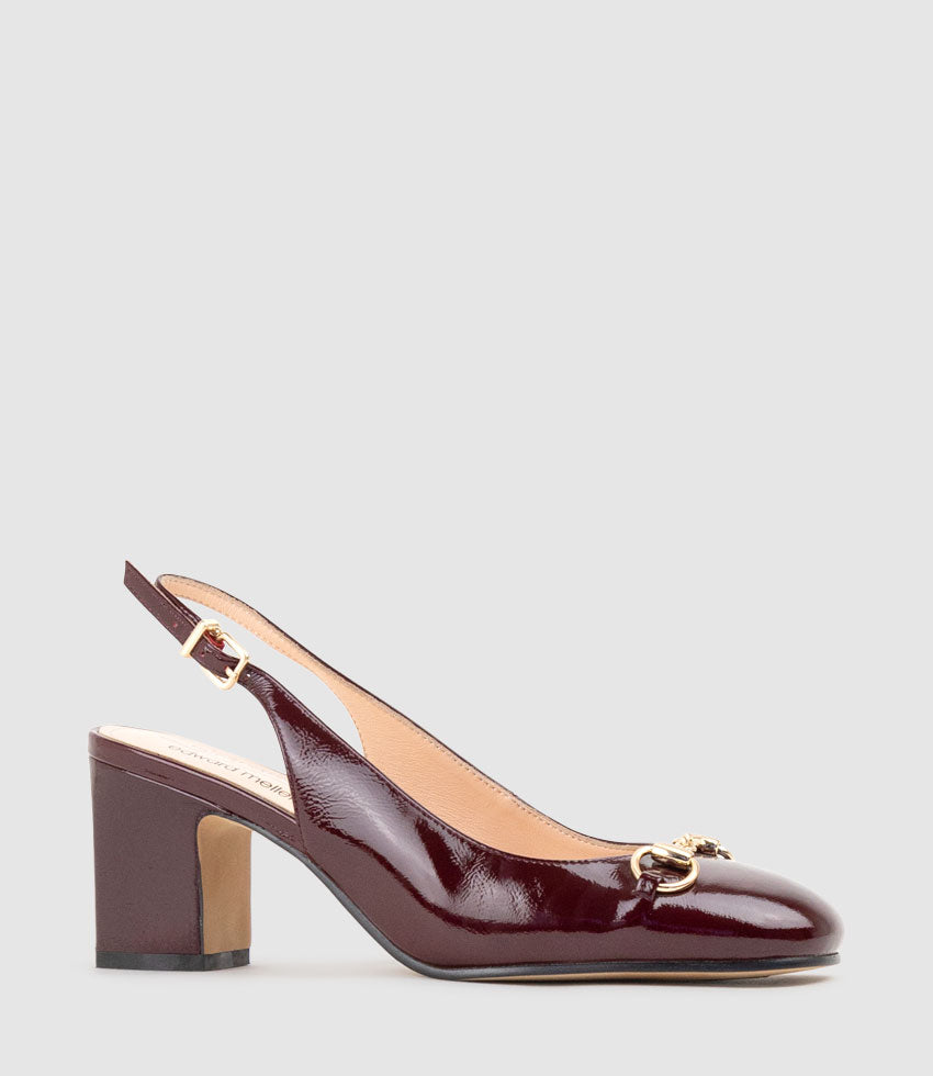 Edward Meller Women’s Camille65 Slingback Pump With Trim In Black Cherry Crinkle Patent | Blacherrypat