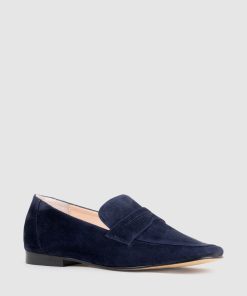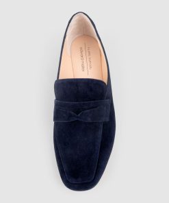 Edward Meller Women’s Flats Faxon Loafer In Navy Suede | Navysue