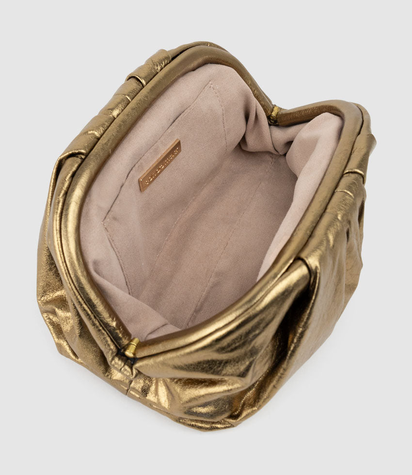 Edward Meller Women’s Neva Ruched Frame Clutch In Brass | Brass