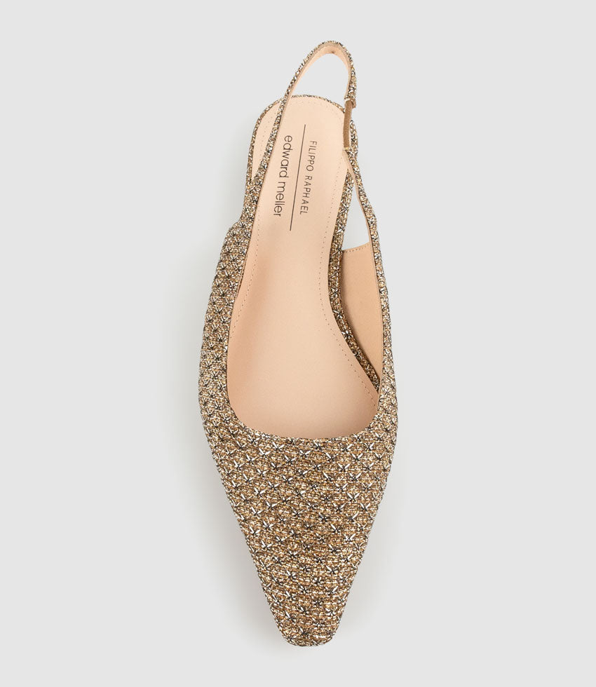 Introducing ELIANA by Filippo Raphael for Edward Meller—a chic chiselled skimmer pump with a slingback design. These ballet flats feature narrow square toes, adding a refined touch to their sleek silhouette. Designed to become a staple in your everyday wardrobe, they offer a perfect blend of elegance and practicality. Ideal for both casual and formal settings, ELIANA brings effortless sophistication to any outfit.