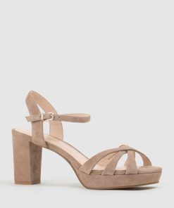 Edward Meller Women’s Rylin80 Multistrap Platform Sandal In Nude Suede | Nudesue