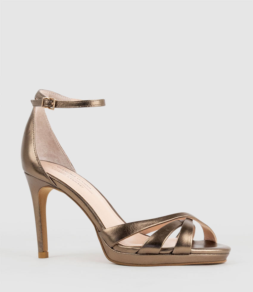 Edward Meller Women’s Sadie90 Strappy Crossover Platform Sandal In Bronze | Bronze
