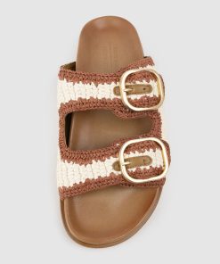 The KROSS sandal by Filippo Raphael for Edward Meller channels relaxed boho style with its wide woven leather straps and statement buckles. Finished with whipstitch detailing for added texture, this two-strap slide sits on a contoured leather sole for all-day comfort. A casual and practical choice for warm-weather days.